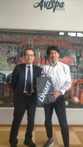 4月6日、弊社代表の小嶌が、アビスパ福岡(サッカーJ1)の西野社長を表敬訪問。西野社長は小嶌が所属していた神戸大学サッカー部の後輩にあたる。