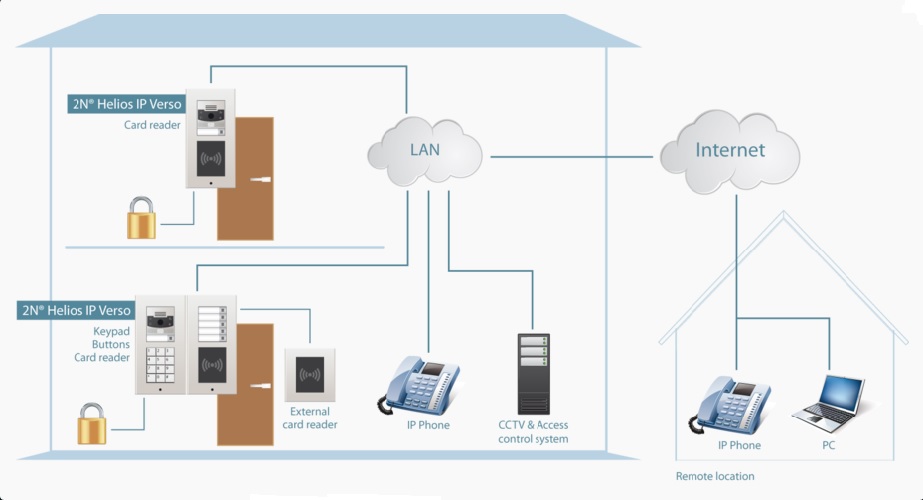 2N Helios IPインターコムは、既存のPネットワーク網を使用することで、容易にシステムの構築が可能です。